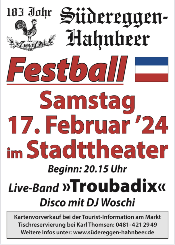 In ole Art und Wies fiern wi am 15.02.2025 unser 184. Johr Südereggen-Hahnbeer.