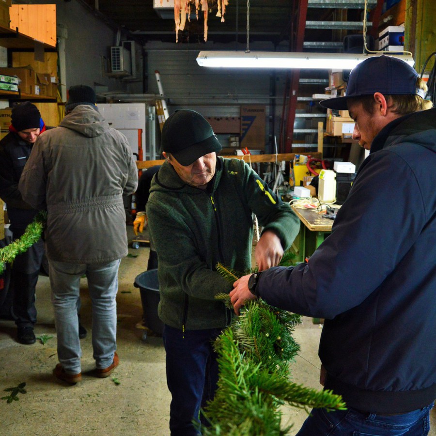 Zum Aufstellen des größten Heider Symbols benötigt die Egge viel "Menpower" und schweres technisches Gerät. Während die viele Helfer die einzelen Bauteile verladen, transportieren und dann