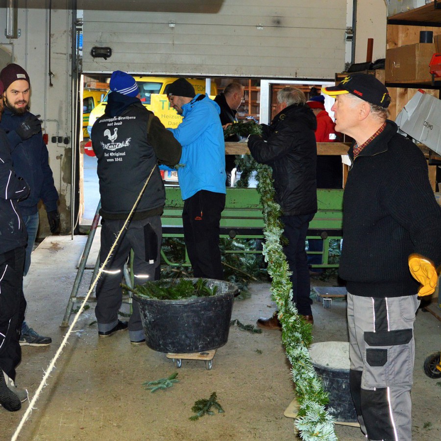 Ein wohl ganz besonderer Tag bei der Süderegge ist das Aufstellen der großen Ehrenpforte und das anschließende Binderfest. Ohne zu übertreiben feiert die Egge hier ein kleines Hahnbeer.